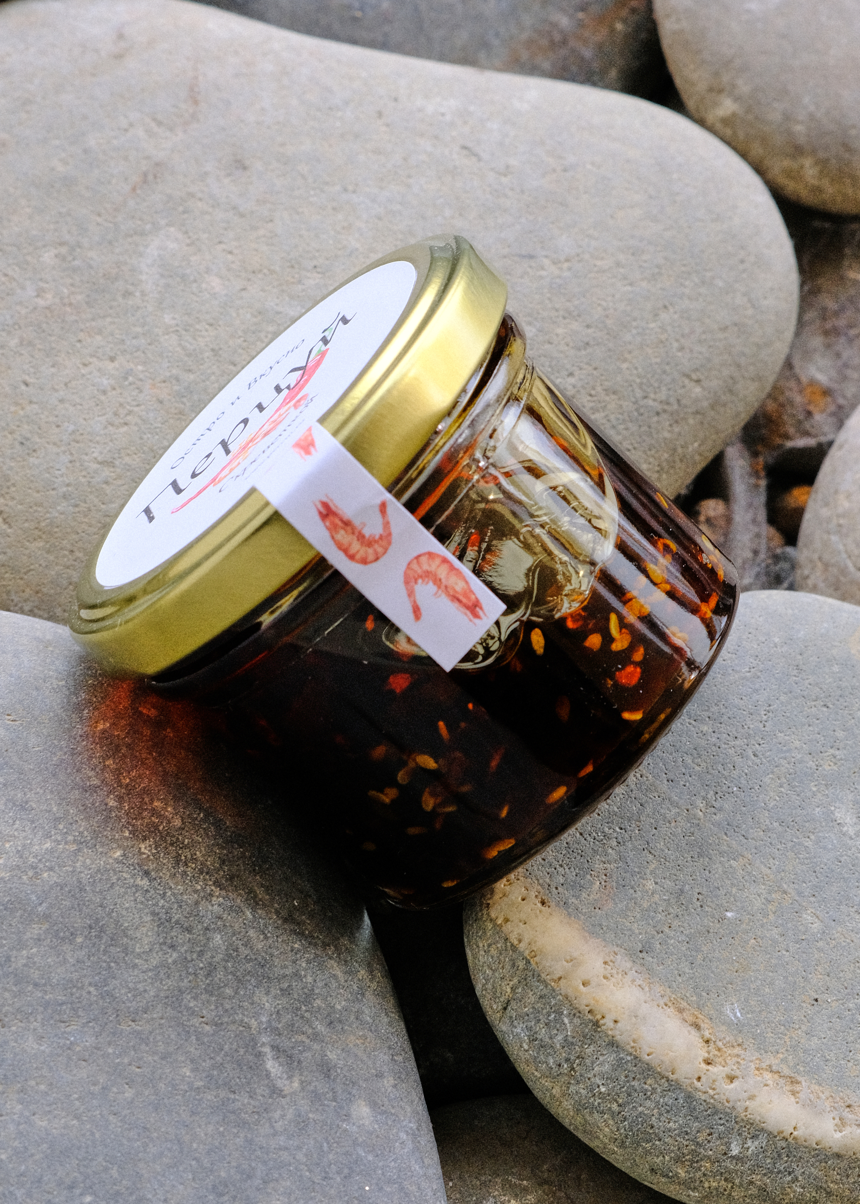 Состав: Масло подсолнечное, перец чили, сушенные креветки, кунжут, соевый соус.